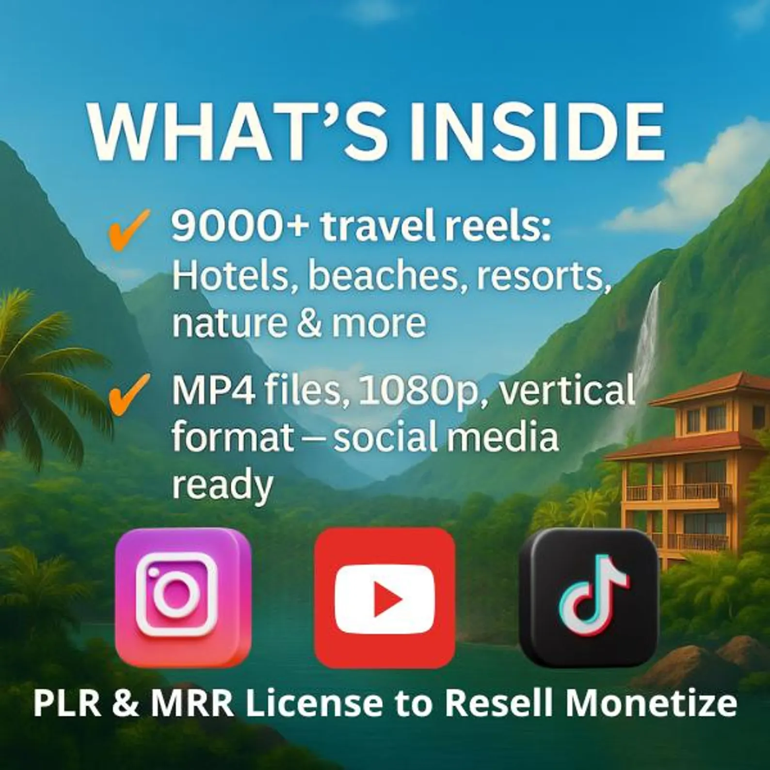 ✔ 9,000+ HD faceless travel reels (MP4 vertical 9:16)